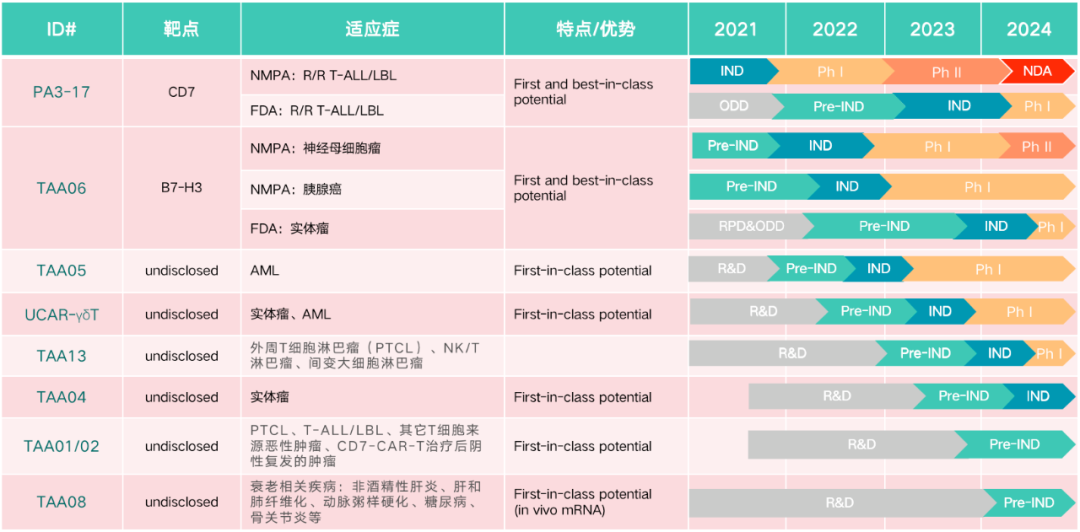 细胞产品研发管线