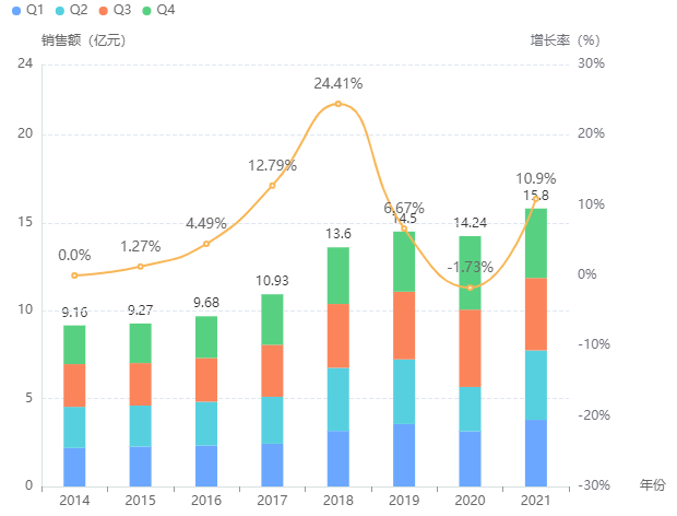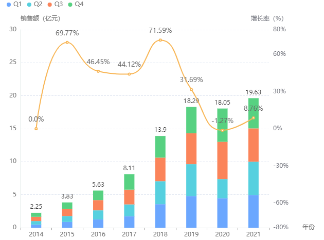 替加环素为辉瑞原研的甘氨酰四环素类抗菌药物,于2005年6月首次在美国上市。2010年11月,注射用替加环素获准进口上市。据药融云统计,2021年注射用替加环素院内销售额超19亿元,同比增长8.76%。