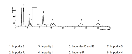 EP收录的测定法色谱条件如下:用十八烷基硅烷键合硅胶为填充剂(Hypersil BDS C18, 150mm*4.6mm*5μm);以磷酸缓冲液(取磷酸二氢钾2.7g,加水1000ml使溶解,取磷酸缓冲液900ml、三乙胺6ml,混匀,用磷酸调节pH值至2.0)为流动相A,乙腈为流动相B,按下表进行线性梯度洗脱。流速为每分钟1.0ml;检测波长为270nm;进样体积为10μl。