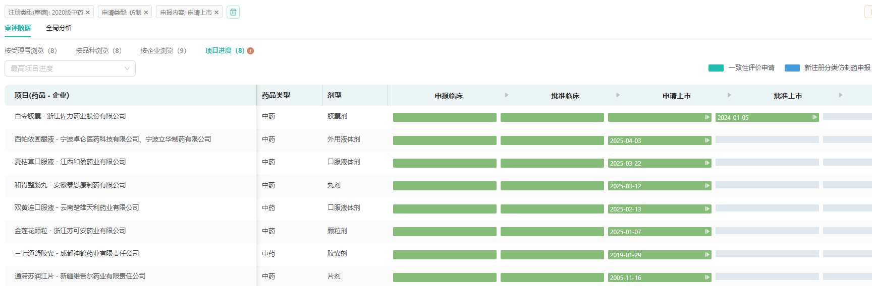 提交上市申请的中药仿制药项目进度
