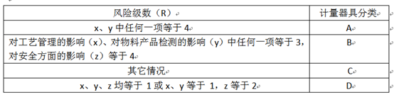 5.3.1.2 计量器具风险评估为A类的计量器具。