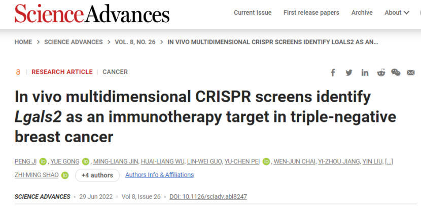[1] In vivo multidimensional CRISPR screens identify Lgals2 as an immunotherapy target in triple-negative breast cancer
