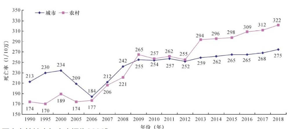 1990-2018年中国城乡居民心血管病死亡率变化