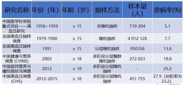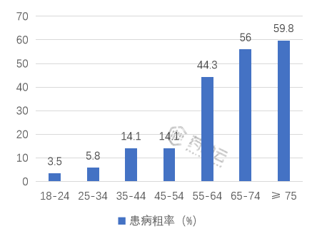 中国高血压调查研究中不同年龄段居民高血压患病粗率