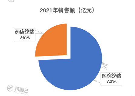 根据药融云医院终端、药店终端数据显示,2021年心血管化药规模接近900亿元,其中医院终端占比达到74%。