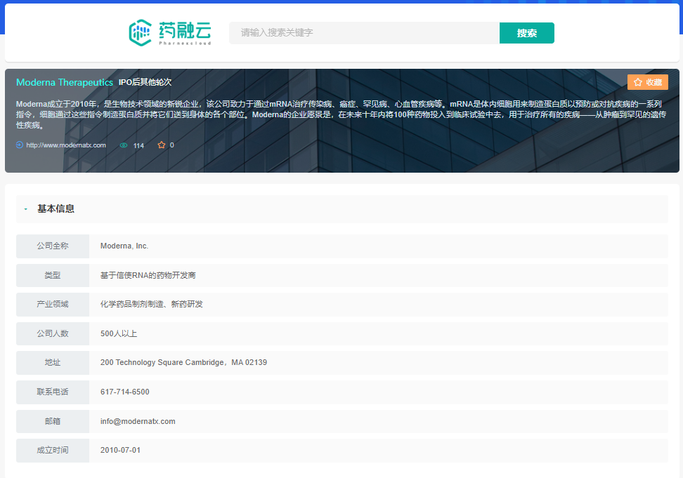 Moderna公司基本信息