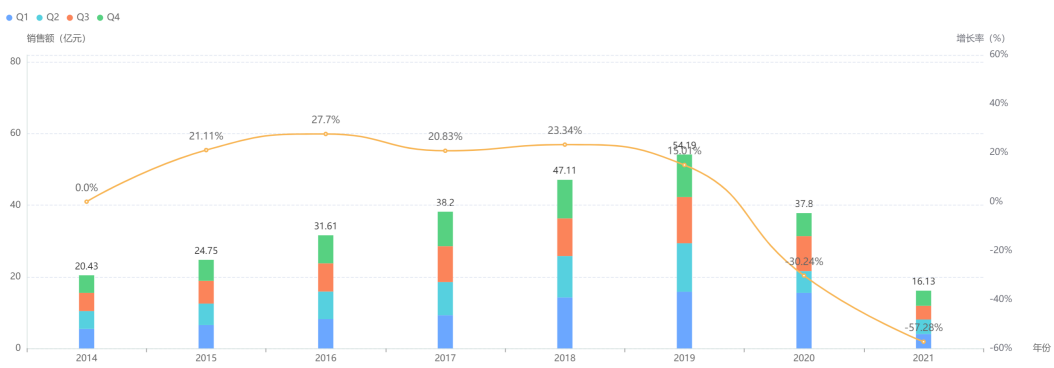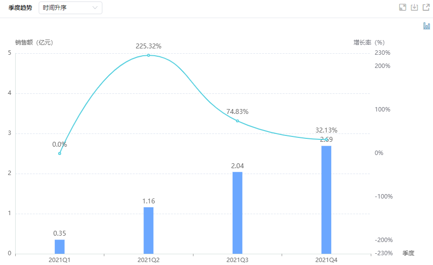据药融云全国医院销售数据库统计,艾弗沙2021年第二三四季度在全国医院端的销售额总计515.15万元,其中第四季度销售额为367.37万元,相比第三季度增长200.32%,增速可观。