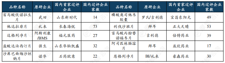 热门品种富马酸伏诺拉生片原研企业为武田,2014年全球首次获批,2019年进入中国市场。国内布局该品种的仿制药企众多,首家过评企业为山东新时代,目前过评企业总计14家。