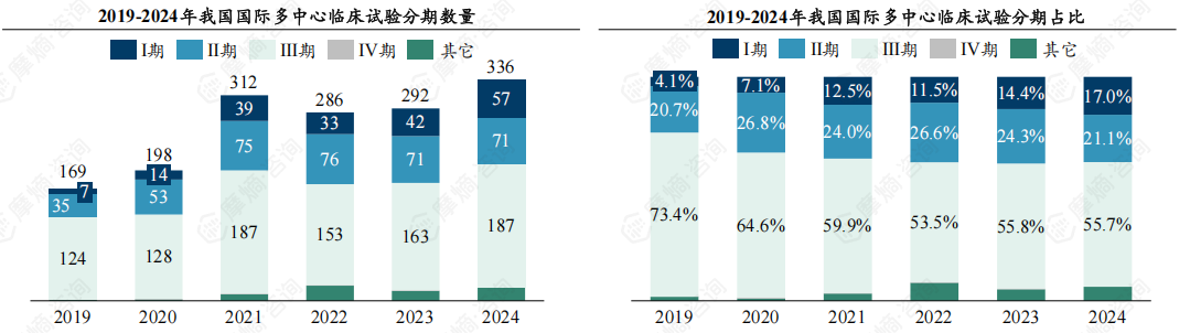 1.我国国际多中心临床试验数量持续攀升,2024年达336项,占比约13.4%