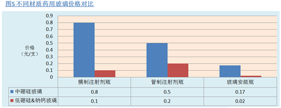 每支中硼硅玻璃价格比钠钙/低硼硅玻璃高0.3-0.7元,在价格上不占优势,但是其与药物不发生反应,利于产品稳定,可节研发时间和研发成本,另一方面也有利与后期市场的推广,这些都是钠钙玻璃和低硼硅玻璃所不能比拟的。虽然低硼硅玻璃目前在国内仍有较高的市场份额,但是随着我国创新药国家化进程的加快,仿制药一致性评价的需求,加上政策加持,中硼硅玻璃市场份额将逐步扩大,必将取样钠钙/低硼硅玻璃。