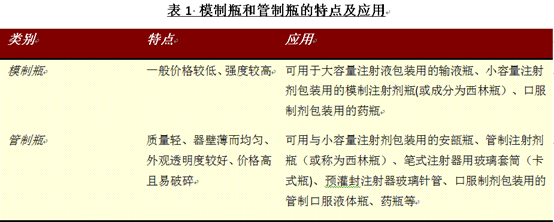 (1)模制瓶和管制瓶的应用
