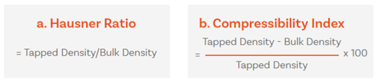 粉末粒子间相互作用不仅影响粉末的堆积性质,还影响粉末的流动性。因此,堆密度和振实密度的差异,能够有效评估粉末粒子间相互作用的相对重要性,也常用作粉末流动能力参数,如压缩性指数或豪斯纳比率。
