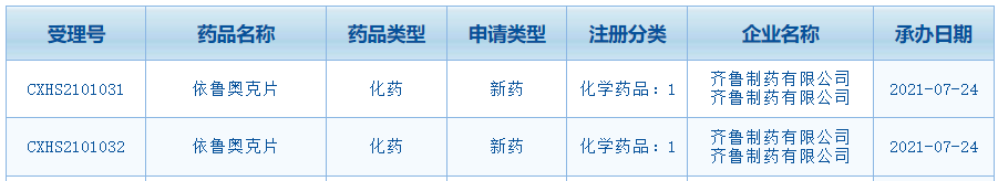 2021年7 月 24 日,CDE 官网显示,齐鲁制药递交 1 款 1 类新药依鲁奥克片的上市申请并获受理。该产品为齐鲁制药自主研发的新型ALK/ROS1抑制剂,代号为WX-0593。