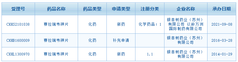 2021年9月8日,药审中心承办了银杏树药业(苏州)有限公司治疗丙肝1类化药赛拉瑞韦钾片的上市申请。