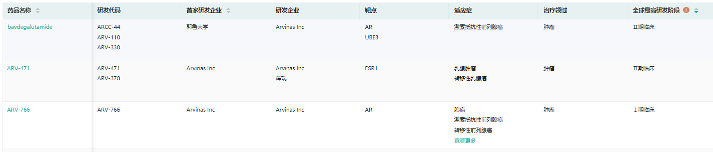 Arvinas进入临床的主要候选产品