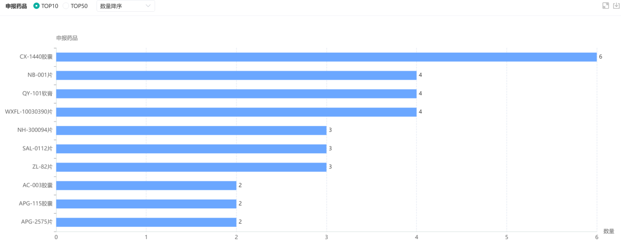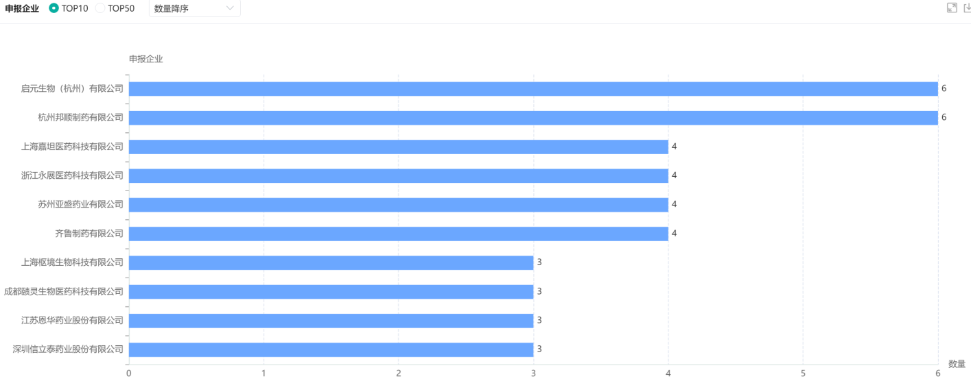 6月化药新药申报临床企业TOP10排名