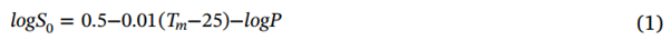 由Jain和Yalkowsky在2001年建立的修改后的一般溶解度方程(GSE)可以阐明logP和Tm在溶解度中的作用,方程1如下: