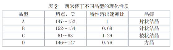 API分子的堆积形式的差异造就了多晶型现象,多晶型化合物具有不同的晶格能进而影响了同一分子不同晶型的溶解度差异,具体实例如表1,2。