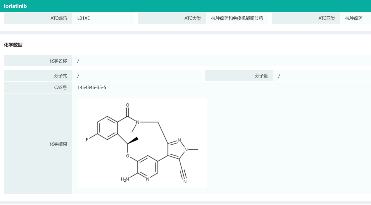 2022年4月29日,辉瑞的洛拉替尼(Lorlatinib)在中国获批上市,用于治疗间变性淋巴瘤激酶(ALK)阳性局部晚期或转移性非小细胞肺癌(NSCLC)。