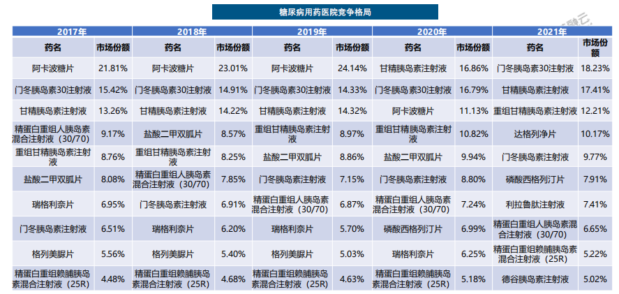 2016-2021年我国糖尿病药物的主要品种
