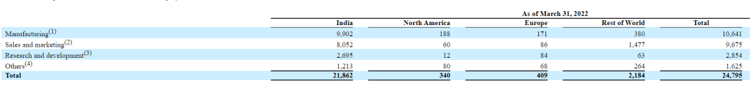 截至2022年3月31日,Dr. Reddy's员工总人数为24795人,研发人员(R&D)数量为2854人,研发人员占比11.5%。