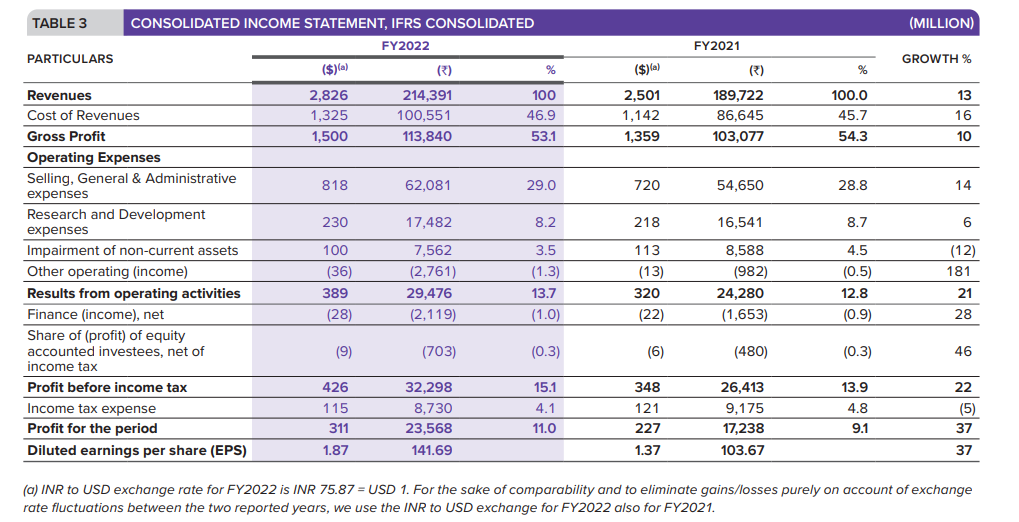 毛利润达到1138.4亿卢比(15.00亿美元),增长了10%。2022财政年度的毛利率为53.1%。对于PSAI业务,毛利率为22.2%。PSAI的毛利率下降主要是由于一些产品的价格侵蚀和出口利益的减少。