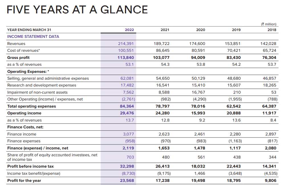 近五年来,Dr. Reddy's营收和利润逐年攀升。从2018年到2022年,营业收入增长了723.63亿卢比(约合9.07亿美元)。