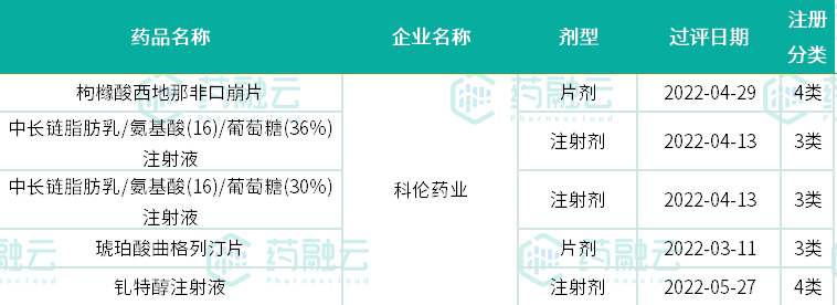 科伦药业过评首仿药(截止2022年8月10日)