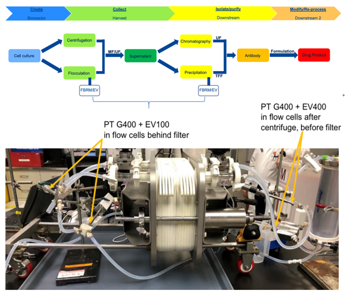 安进公司纯化工艺开发部门[3]开发了一种新颖且简单的双聚合物絮凝方法,用于从高细胞密度的细胞培养过程中收获单克隆抗体。在实验中,研究人员利用ParticleTrack G400来监测体系中不同絮凝剂加入后颗粒数量和大小的变化情况,从而判断絮凝策略的有效性。