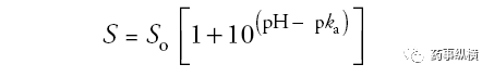 完全“未电离”药物的溶解度(So固有溶解度)可以在给定化合物的pH(S)和pKa下通过Henderson-Hasselbach方程式测量溶解度相关性。一元化合物的这个方程的表达式是: