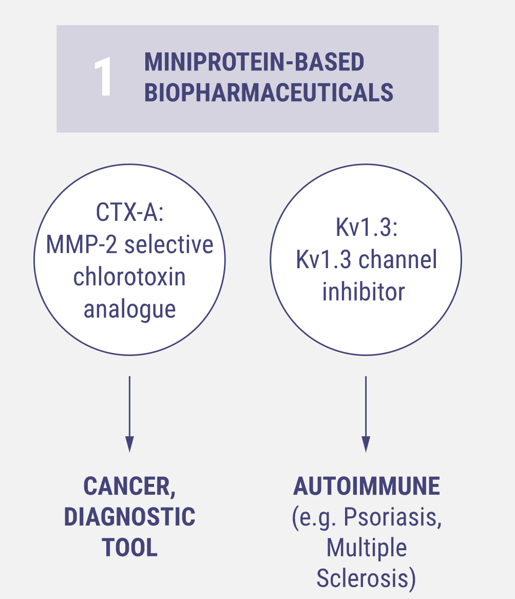 VRG是中欧和东欧药物研发的领导者,专注于使用专有技术平台的基于小蛋白质的发现和开发。采用定向进化的方法产生专有的蛋白质/肽,并将其作为小蛋白药物或细胞和基因治疗药物。“designer miniprotein”技术平台基于天然存在的毒素和其他肽分子,采用定向进化方法,创建了一个具有超过一百万个变体的肽巨型库。从已鉴定的肽类似物中,可以根据所需的药理学特性选择最有希望的候选药物。