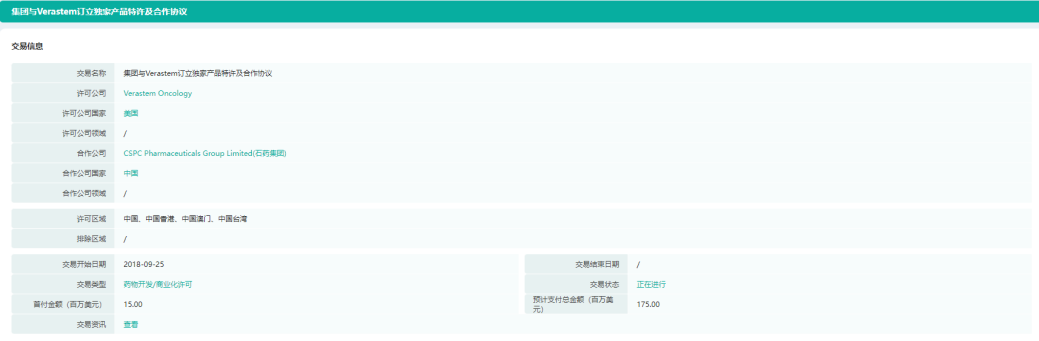 而在国内市场,在今年才有一款PI3K抑制剂靶向药获批上市:2022年3月,石药集团度维利塞胶囊(duvelisib)获批上市,用于治疗以往至少经过两次系统性治疗的復发或难治性滤泡性淋巴瘤(r/r FL)成年患者。早先在2018年9月,石药集团就与Verastem Oncology签订协议,获得度维利塞在中国的独家权益。据药融云全球医药交易数据库显示,作为独家特许权的代价,石药集团将向Verastem支付预付款项1500万美元(约1.03亿元人民币)及开发里程碑费最多3000万美元(约2.06亿元人民币),里程碑费与预付款合计共3.09亿元人民币。