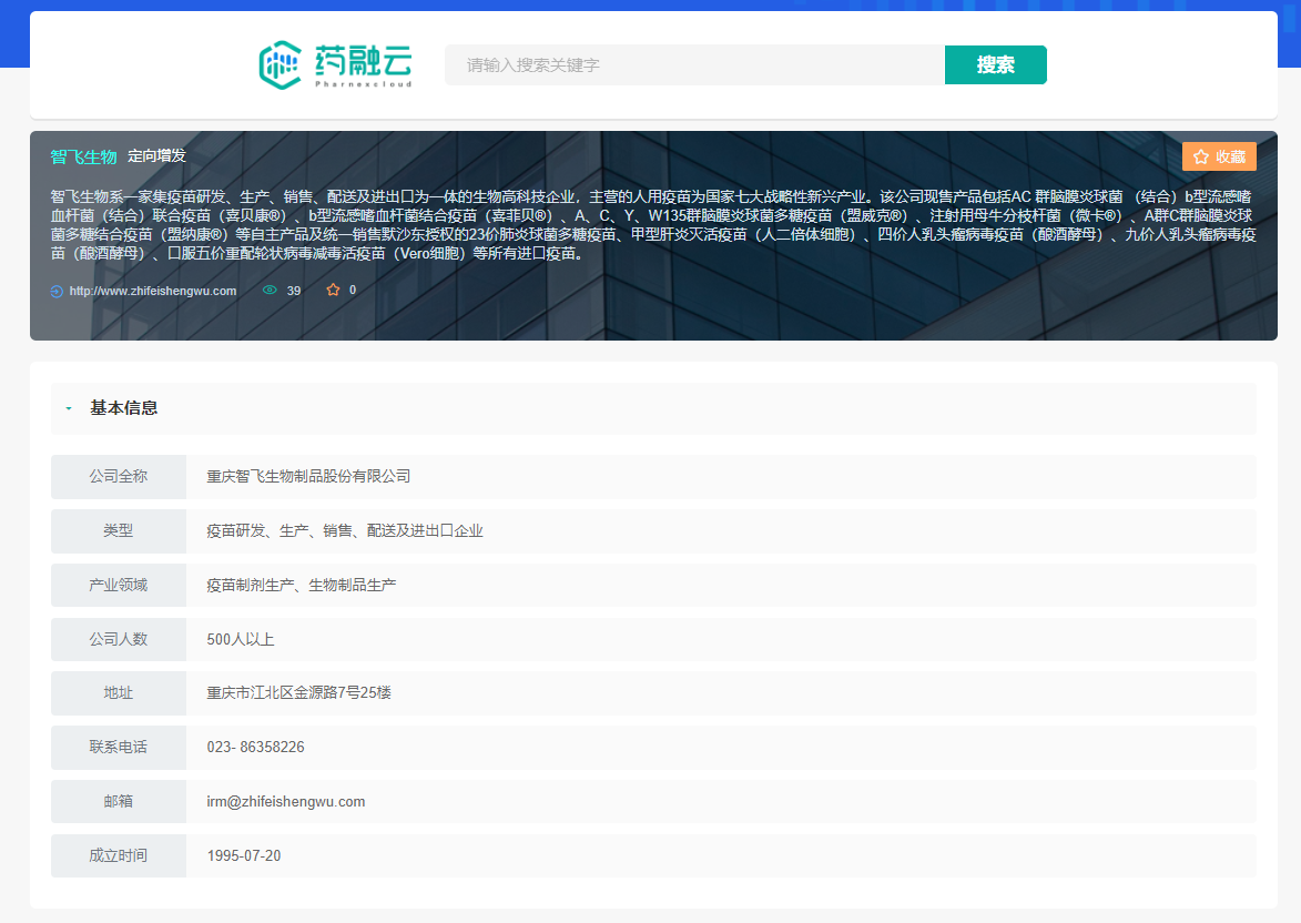 想要解锁更多药企信息吗?查询药融云数据库(https://www.pharnexcloud.com/?zmt-mhwz)掌握药企公司基本信息;投融资情况;最新动态;产品管线布局、药物基本信息、研进展、临床试验信息、市场规模与前景,可否投入研发!注册立享15天免费试用和虎年首份医药数据大礼包!