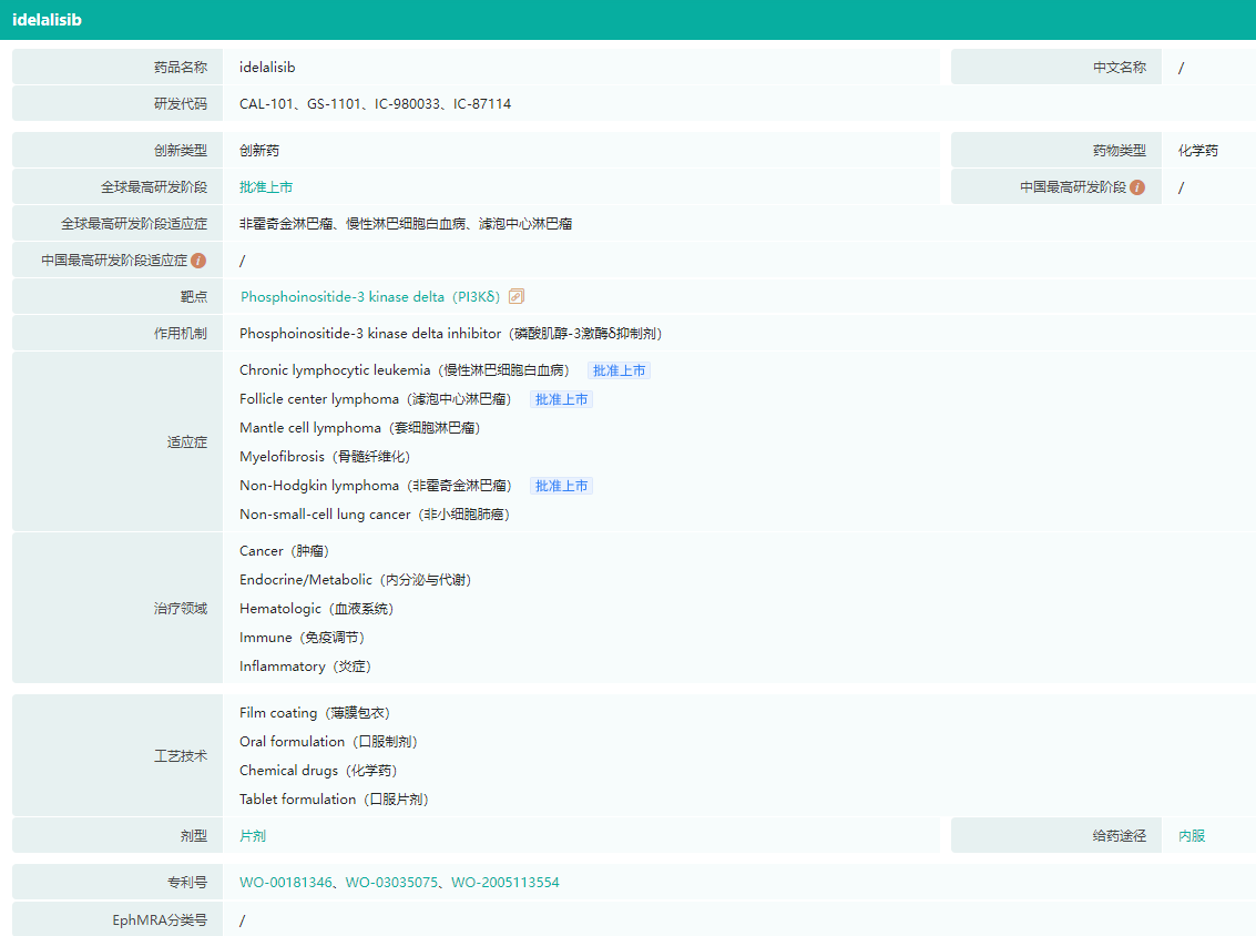 Idelalisib基本信息(部分)