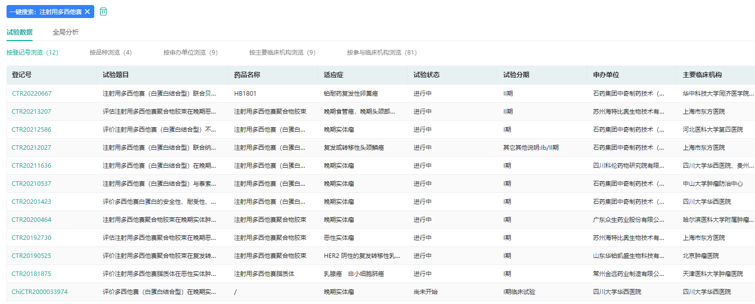 注射用多西他赛中国临床试验数据(部分)