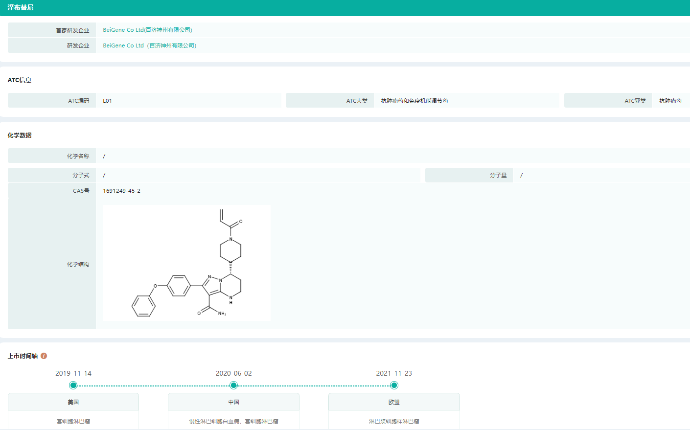 泽布替尼上市时间轴