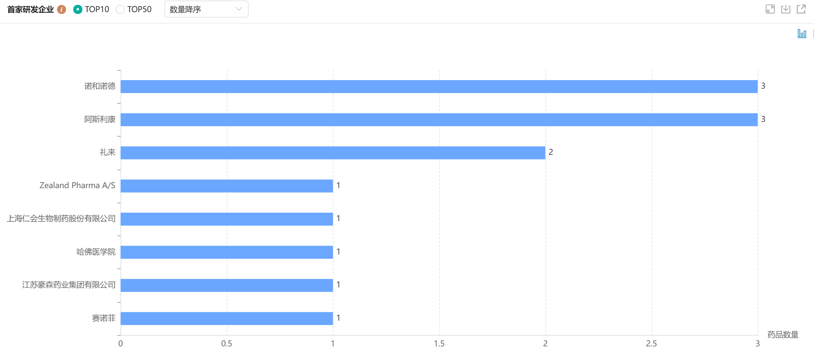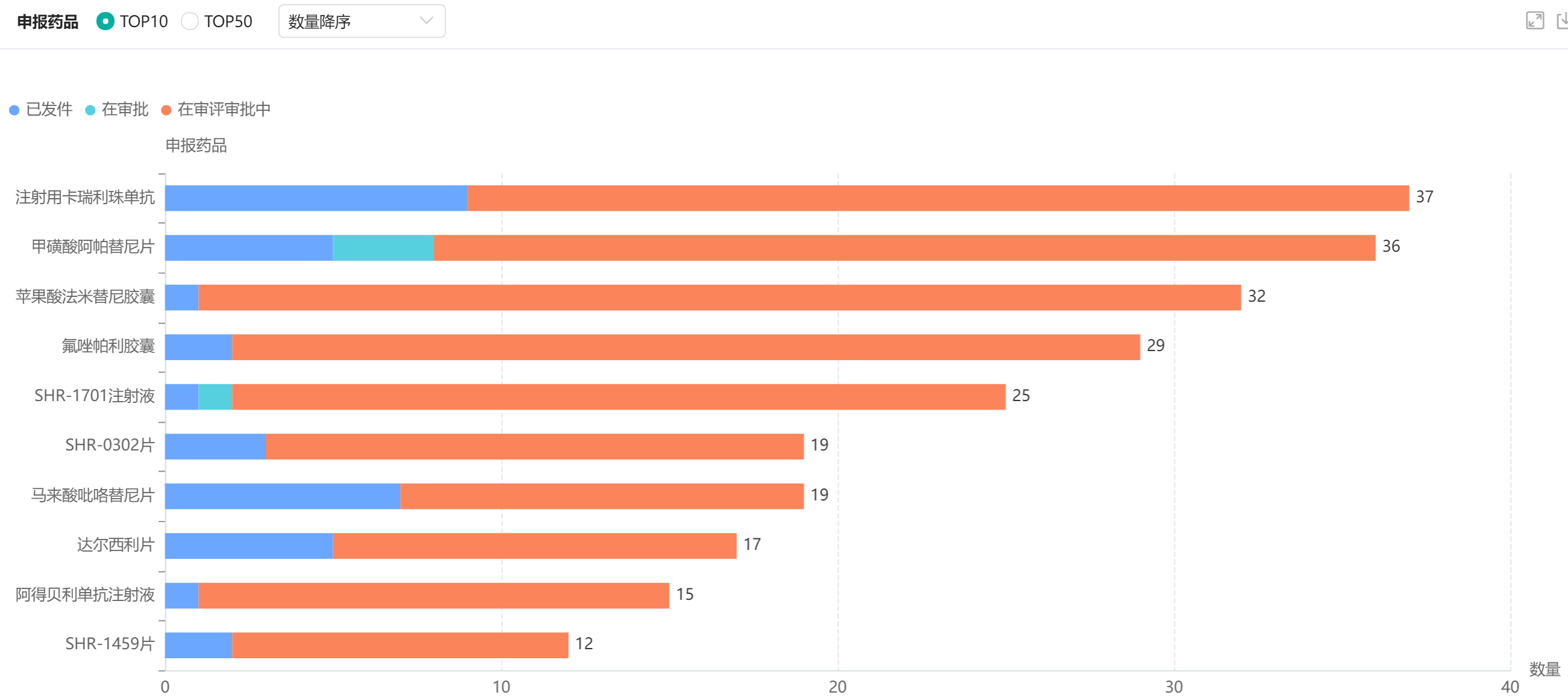 恒瑞医药申报药品数量TOP10
