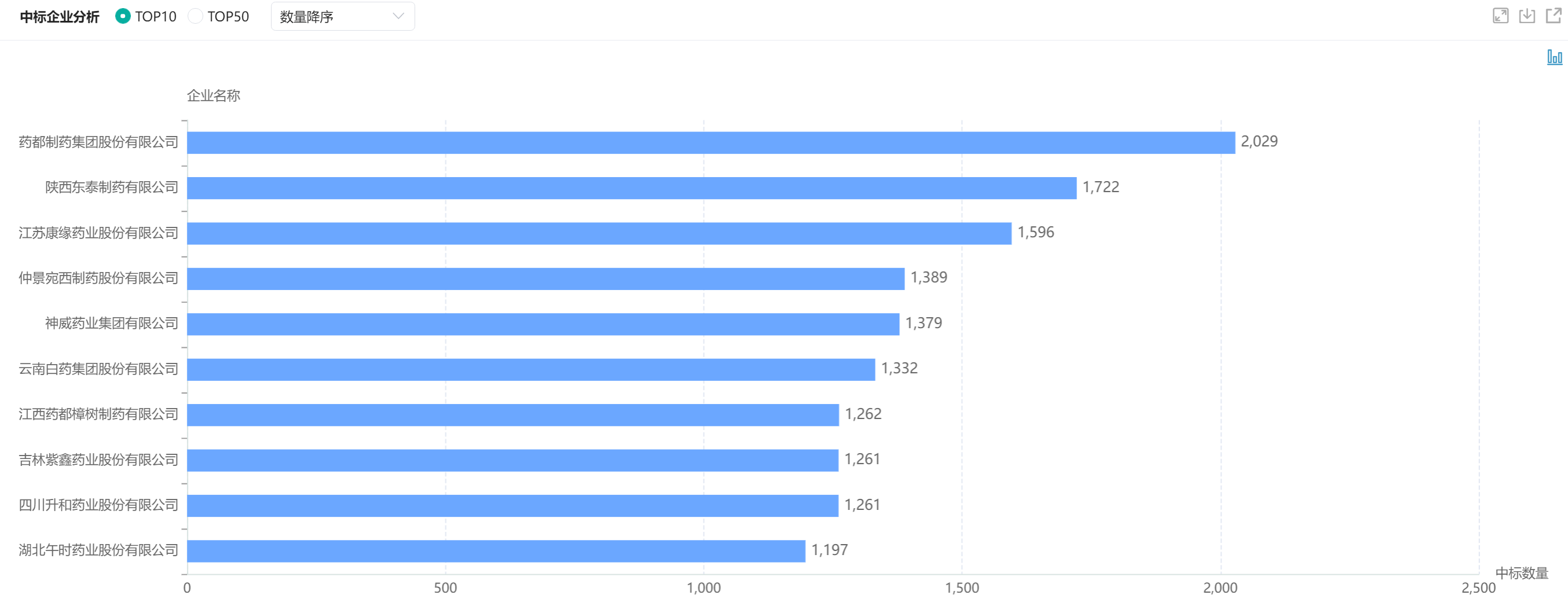 而在中成药集采中标企业分析维度中,药都制药以中标2029个药品数量位居榜首,紧随其后的是东泰制药与康缘药业,中标药品数量分别为1722个、1596个。