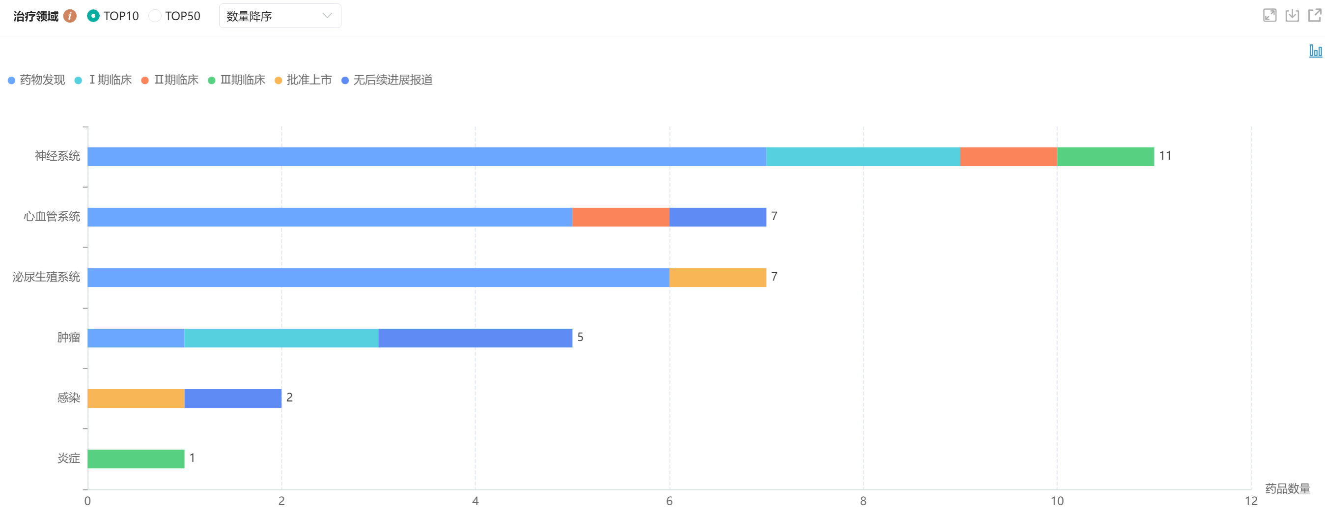 以岭药业不同治疗领域的药品数量