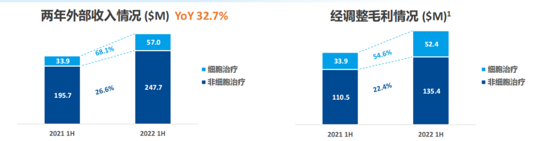 其中,2022年上半年细胞治疗外部收入约为5700万美元,较2021年同期的约3390万美元增长68.1%。