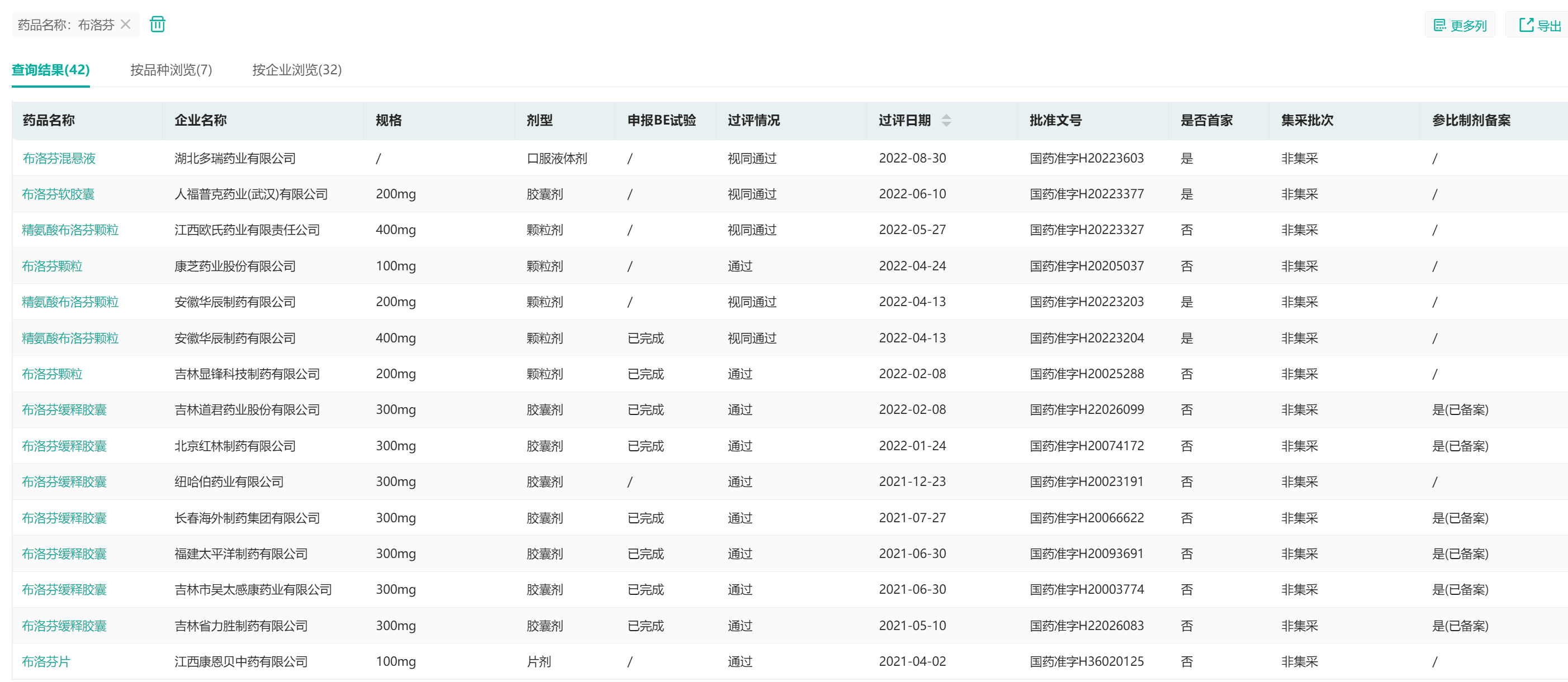 其他剂型暂时没有企业过评。其中,布洛芬注射液和布洛芬片已进入第四批集采目录,布洛芬缓释胶囊/颗粒被纳入第三批国家集采。