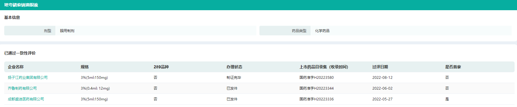 地夸磷索钠滴眼液一致性评价情况