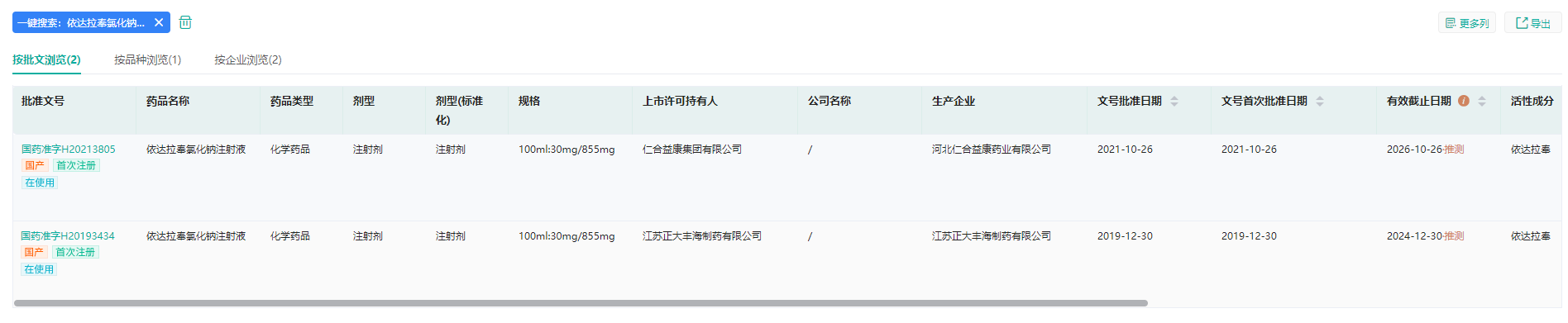 依达拉奉氯化钠注射液批文信息