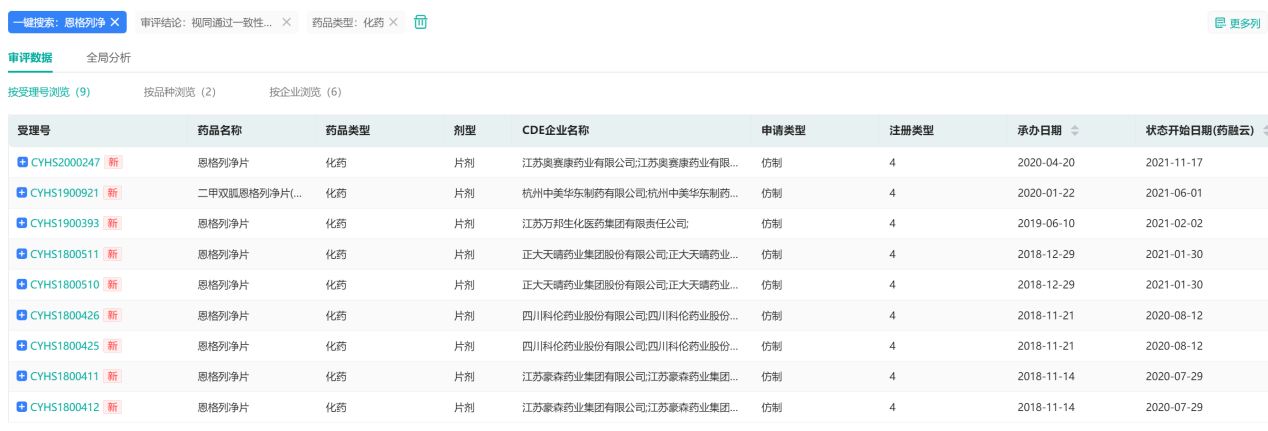 恩格列净仿制药审评数据(部分)
