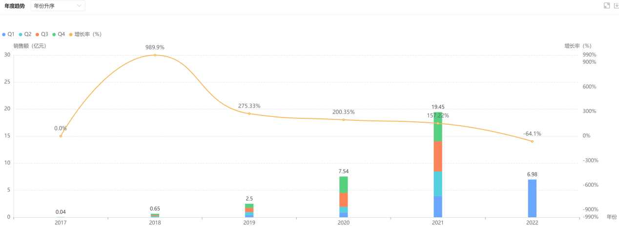 达格列净医院端历年销售趋势