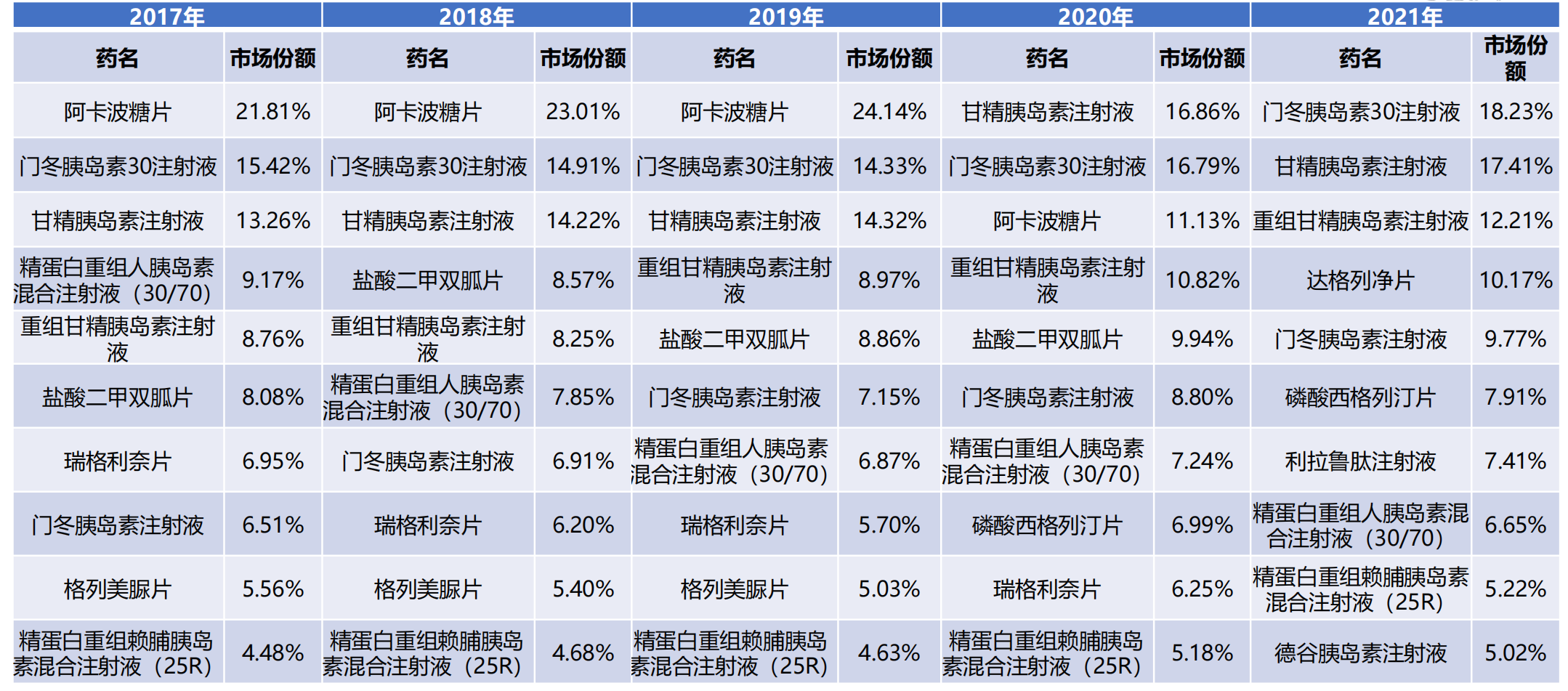 2017-2021年糖尿病用药医院竞争格局