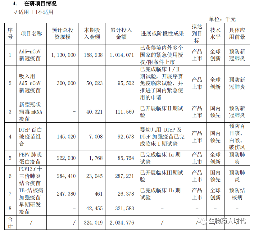 参考资料:康希诺生物公司财报