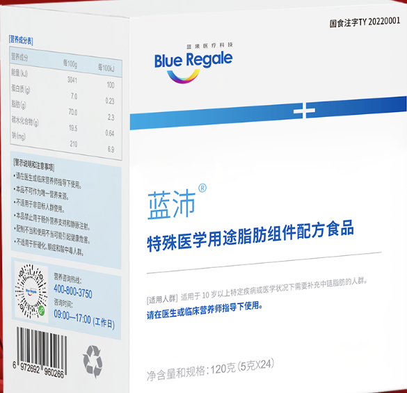 产品名称:蓝沛特殊医学用途脂肪组件配方食品