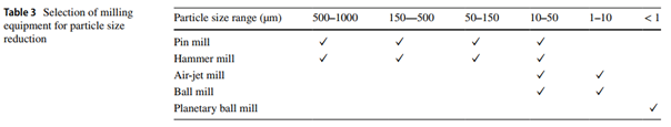 图6:不同粉碎机类型可以达到的粒径级别【见参考文献3】
