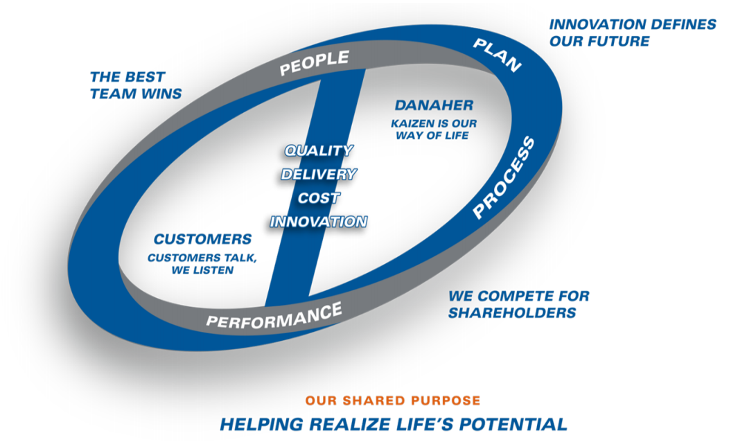 丹纳赫之所以能从当初一家不起眼的信托公司发展成为一家强大的科技巨头,不仅基于创始人的战略远见和领导力,另一个重要的因素在于公司从1980年代开始学习日本商业发展的“Kaizen”(改善,かいぜん)原则——在运营过程中持续改进的“精益制造”理念。丹纳赫是北美最早采用这一经营理念的企业之一,不仅在当时强化了其在行业中的领导地位,后来更是经过逐步演化,最终形成了现在的丹纳赫商业系统(Danaher Business System, DBS)。DBS现在不仅是运营公司日常使用的一套业务流程和工具,更广泛地说还成为了丹纳赫的企业文化。